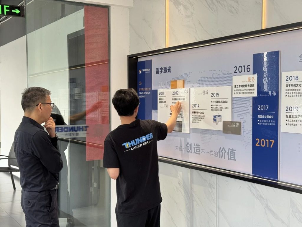 企业风采尽显,科普成果初览在参观展厅过程中,考察团了解了雷宇集团的发展历程和雷宇激光在高校市场的合作成果。其间,考察团认识了雷宇激光的核心主营产品 ——Thunder Bolt 激光切割机。凭借前沿的技术与稳定可靠的性能,这款产品在市场中广受赞誉,收获了极高的认可度。不仅如此,通过展厅内丰富多样的工艺品展示,考察团直观领略到激光切割机在多个领域的实际应用场景,深刻感受到激光技术在现代制造业中的重要作用。